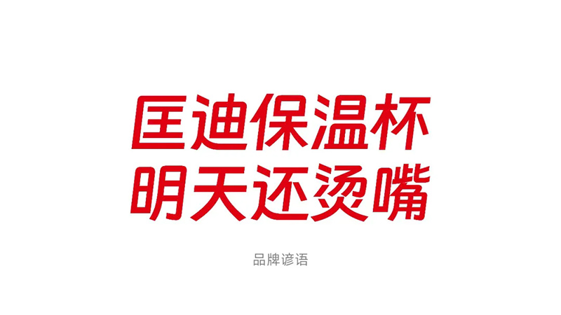 在超級符號創(chuàng)造過程中,有多個創(chuàng)意方向,直到我們確定了匡迪的品牌諺語“匡迪保溫杯,明天還燙嘴”,符號方向才確定下來。當(dāng)品牌諺語確定之后,我們項目組都很興奮,因?yàn)檫@樣一來,話語創(chuàng)意和符號創(chuàng)意可以一體化詮釋“保溫”的理念,釋放更大的信號能量!