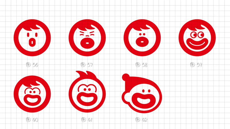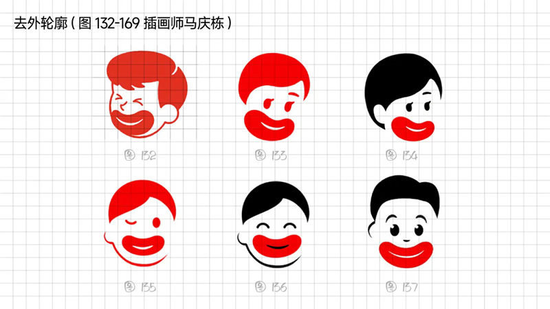 我們再把方案匯總周一上會,華板一眼就選中,后來經(jīng)過細(xì)微的調(diào)整,項目小組長周云鳳說面部表現(xiàn)還可以做減法,去掉鼻子,加強(qiáng)突出香腸嘴,一眼瞟過去就能夠識別到香腸嘴。