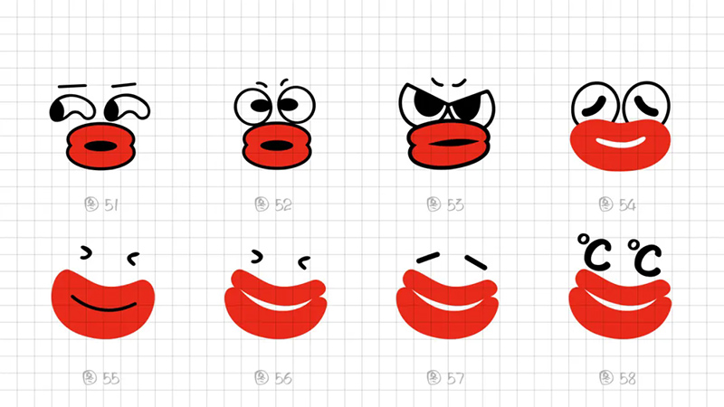 為了這種單一的信號,又繼續(xù)做調(diào)整,打算通過夸張嘴巴的方式,來凸顯“燙”的感覺。過程如下: