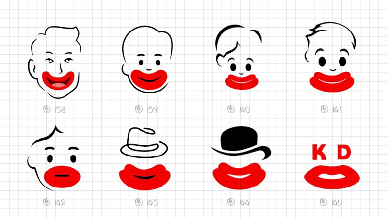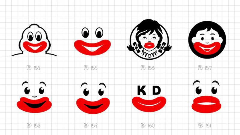 從識別角度出發(fā),我們最終鎖定還是采用2片式結(jié)構(gòu)、3個幾何橢圓、絕對對稱的圖形能高度概括燙嘴的表現(xiàn)特點(diǎn)。在細(xì)節(jié)上調(diào)整圖形,下唇更厚、下唇更寬。